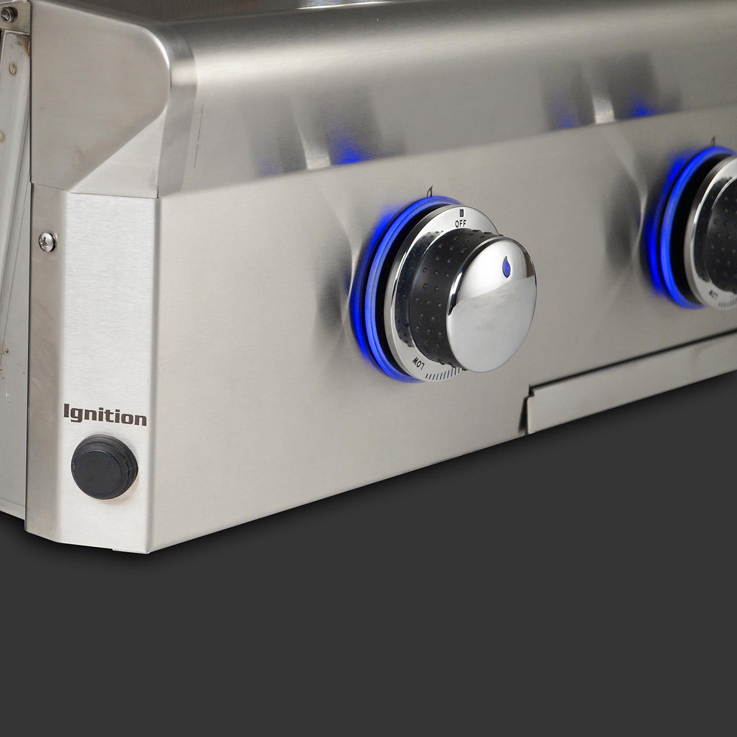 - 45,000 BTUs total, or 55,000 BTUs with rear burner