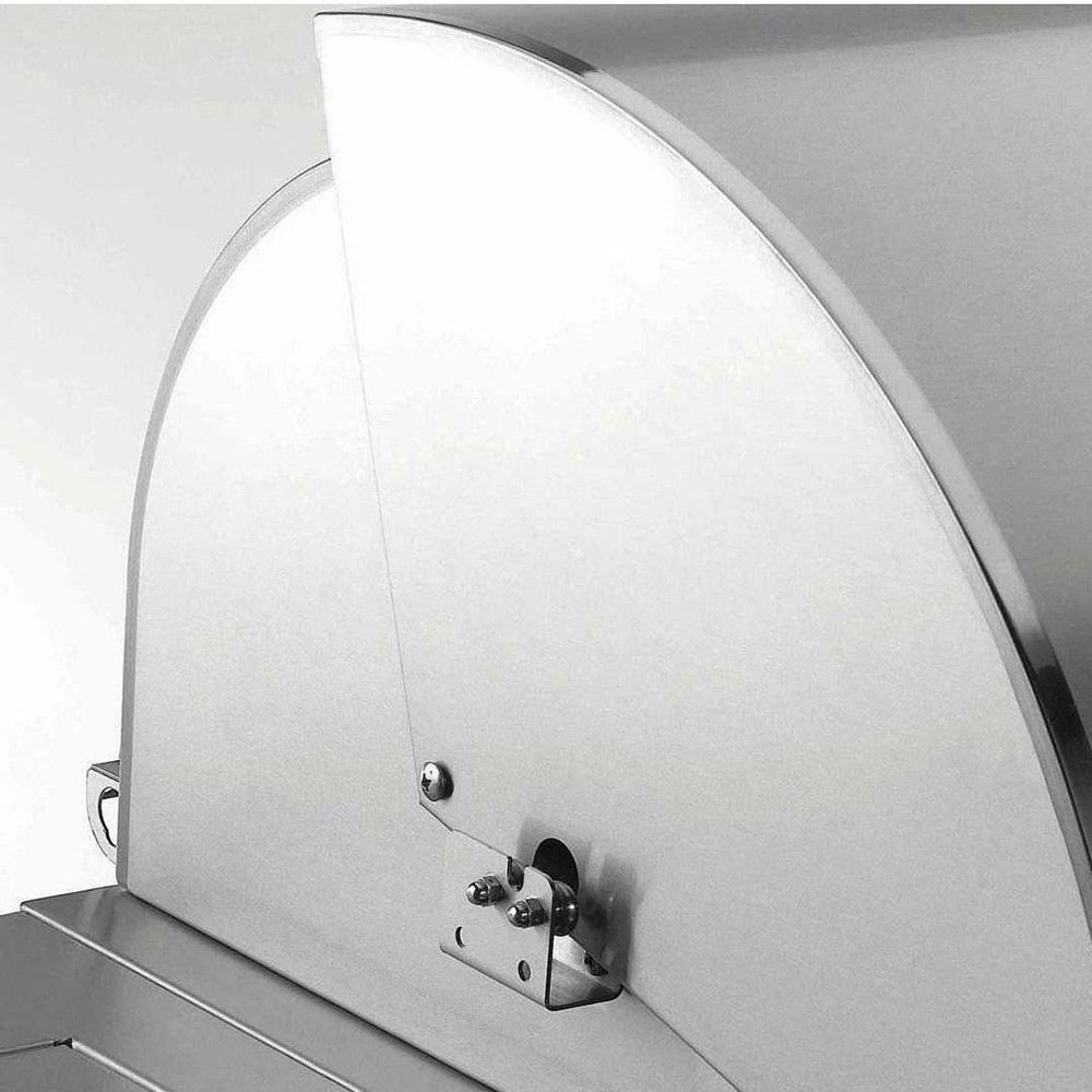 12V interior halogen lights allow for enhanced evening grilling all year long. Made of ¼” thick cast 304 stainless steel, The Aurora's E-shaped burners perform incredible and are built to last, backed by a lifetime warranty. The grill is designed with a protective lip above the ports to prevent clogging from grease.